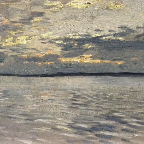 MUDECOR Framed Reflective Seashore at Dusk Textured Oil Painting Calm Ocean Sunset Illustrations Realism Decorative Panoramic Living Room Bedroom Office WHITE