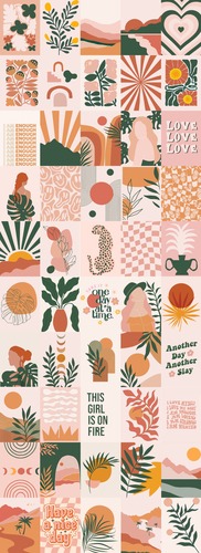 MUDECOR Mural Abstract Botanical Stylish Plant and Geometric Shapes Removable SelfAdhesive paper ation Teen Girls Bedroom Dorm Living Room