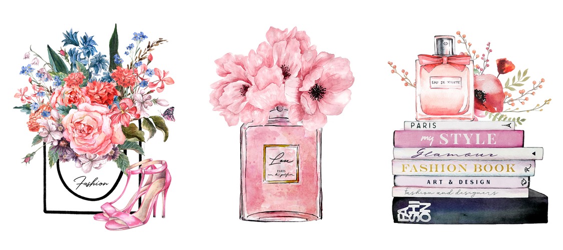 Poster Perfume Bottle and Pink Rose Bouquet Fashion Floral Botanical Illustrations Decorative Girl's Bedroom Living Room Bedroom Office