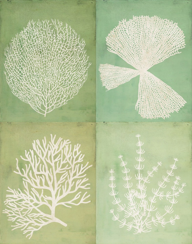 Adhesive Poster Mint Green Ocean Sea Coral Nature Wilderness Digital Decorative Elements Multicolor Botanical Floral Living Room Bedroom Office