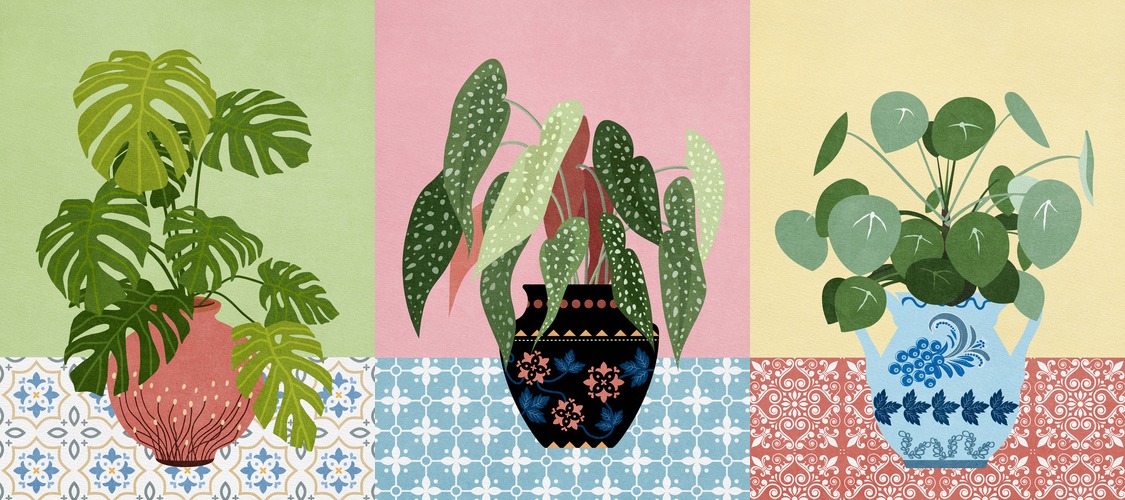 Poster Room Decor Multicolor Living Room Bedroom Office Vibrant Monstera Jungle Plant Pots Nature Wilderness Illustrations Decorative Colorful RelaxZen