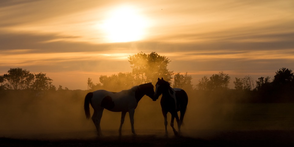 Silhoutte Horses in Love in The Netherlands at Sunset Stretched and Framed