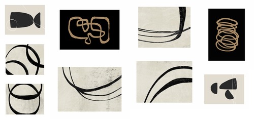 Framed Poster Set of Minimalist Abstract Black and Beige Geometric Line Drawings Illustrations Decorative Living Room Bedroom Office Natural
