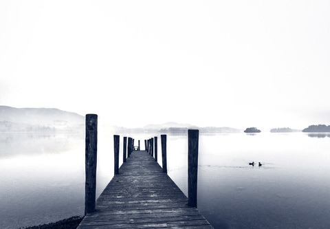 Large Mural Landscape of a Wood Jetty and Calm Lake SelfAdhesive Vinyl paperRemovable