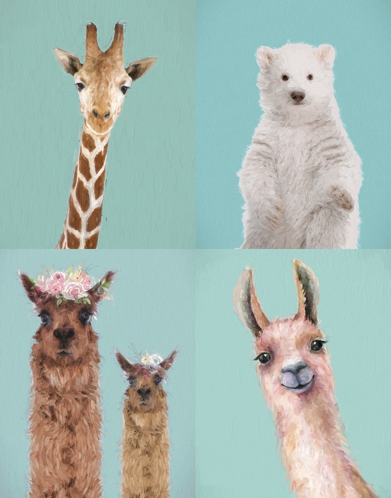 Adhesive Poster Children's Bedroom Animal Nursery Llama Bear Giraffe Nature Wilderness Minimalism Digital Decorative Zen RelaxCalm Multicolor Bedroom