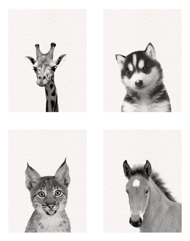 SIGNLEADER Framed Collage Set Black and White Animal Portraits Giraffe Husky Lynx and Horse Decorative Multicolor Living Room Bedroom Office White Frame
