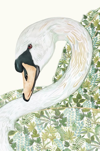 MUDECOR Premium Framed Elegant Swan Silhouette with Green Leaf Illustrations Impressionism Scenic Colorful Living Room Bedroom Office Gold
