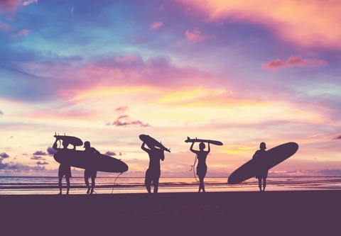 Silhouette of Surfer People Carrying Their Surfboard on Sunset Beach Vintage Filter Effect with Soft Removable Mural SelfAdhesive Large paper