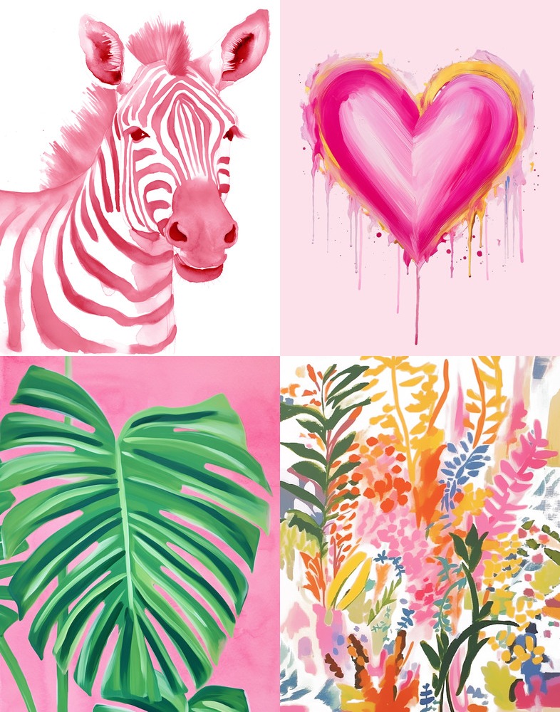 Adhesive Poster Love and Wildlife Striped Zebra and Heart Illustrations Preppy Room Decor Pink Decor Digital Decorative Multicolor Scenic Bedroom