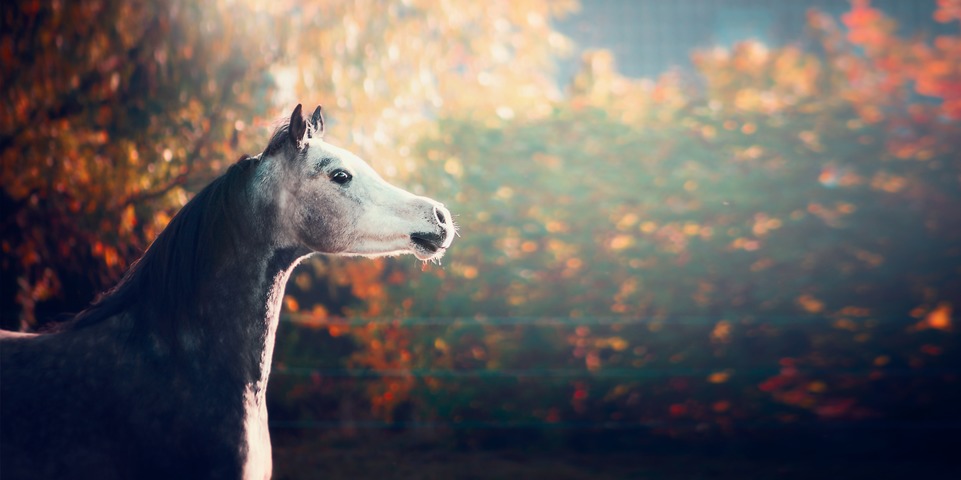 Beautiful Arabian Horse with Whitehead on Wonderful Nature Background Stretched and Framed
