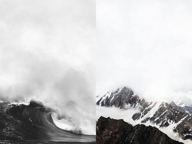 Framed Set Black and White Snowy Mountain Range with Cloudy Skies Abstract Zen Digital Contemporary Living Room Bedroom Office