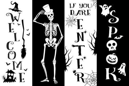 MUDECOR Halloween Skeleton Welcome Sign Holidays Spooky Scary Pumpkin Fall Autumn Witch Broomstick Illustrations Digital Decorative Bohemian Bedroom