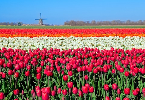 Colorful Tulip Fields and Dutch Windmill in North Holland Removable Mural SelfAdhesive Large paper