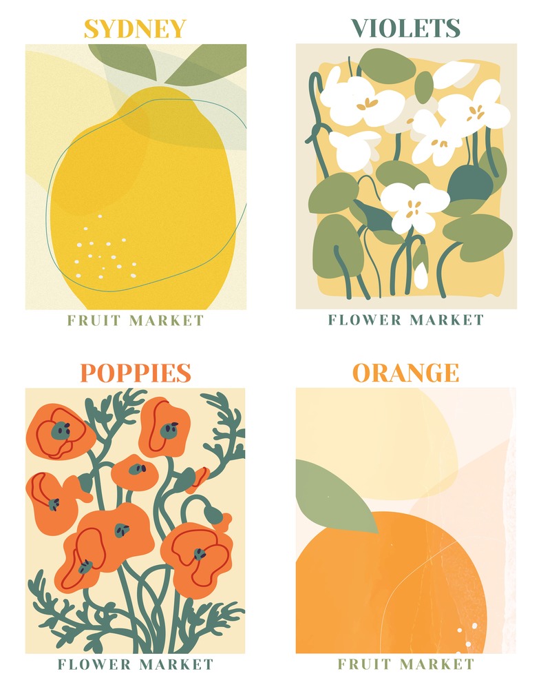 Framed Sydney Orange Flower Poppies Set of Fruit Flower Market Preppy Room Decor Décor Living Room Bedroom WHITE