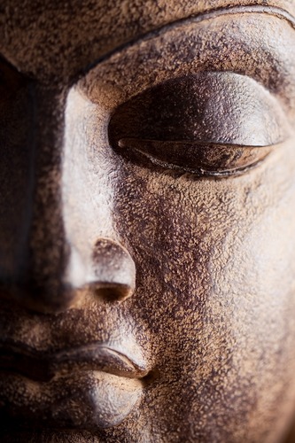 Close Up Golden Bronze Buddha Statue Face Spiritual Religious ZenMeditation Decorative Bohemian RelaxCalm Living Room Bedroom Office