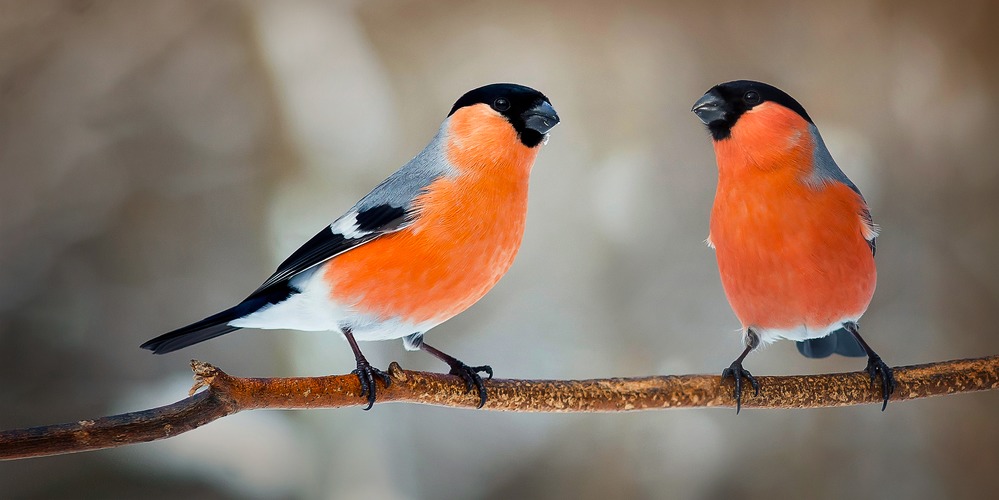 Framed Set Orange Bullfinch Bird Duo in Winter est Animals Wildlife Photography Realism Chic Portrait Colorful Scenic Living Room Bedroom Office Natural