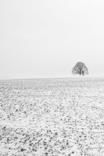 MUDECOR Framed Winter's Lone Sentry Stark Tree in Snowscape Illustration RelaxCalm Warm work Black Frame