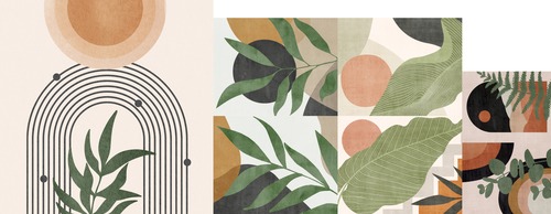 SIGNLEADER Framed Round Wooden Clock Set MidCentury Pastel Circles est Plants ative Living Room Kitchen Bedroom Office