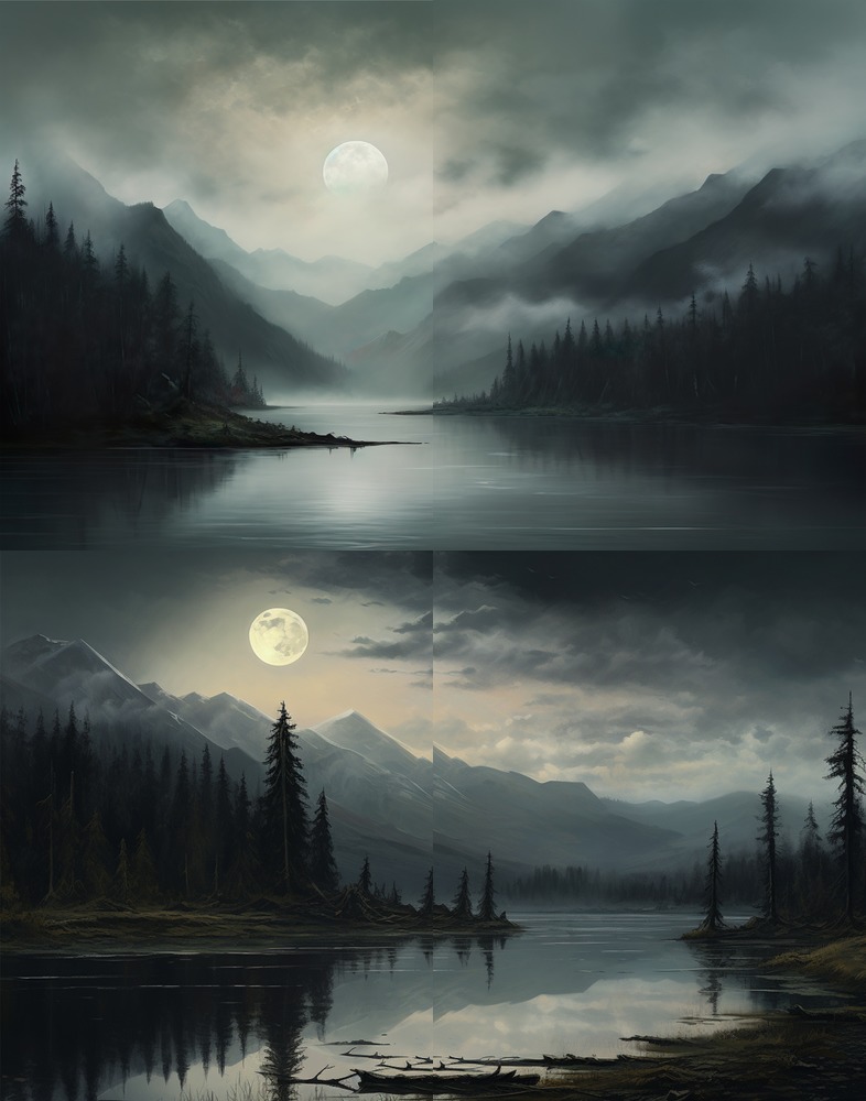 Framed Poster Mystical Moonlit Mountain Scenery Tranquil Night Landscapes Illustration Decorative Multicolor Living Room Bedroom Office NATURAL