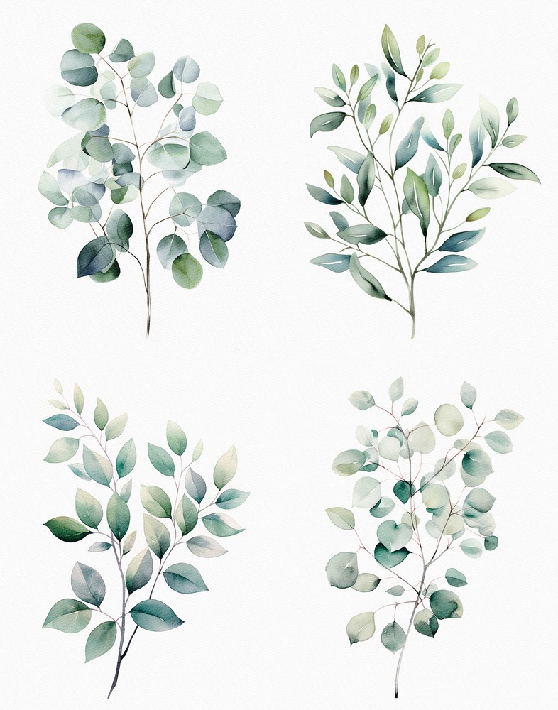 Framed Poster Green leaves Plants Nature Illustration Decorative CountryFarmhouse Rustic Cozy Zen Living Room Bedroom Office NATURAL