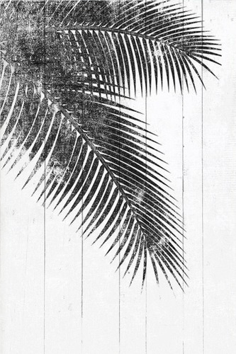Framed Tropical Coconut Palm Leaves Botanical Plants Wood Realism Contemporary Urban Black and White Living Room Bedroom Office Natural