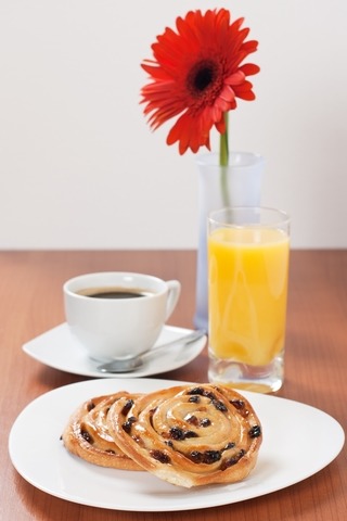 Still Life Continental Breakfast Served with Coffee and Orange Juice