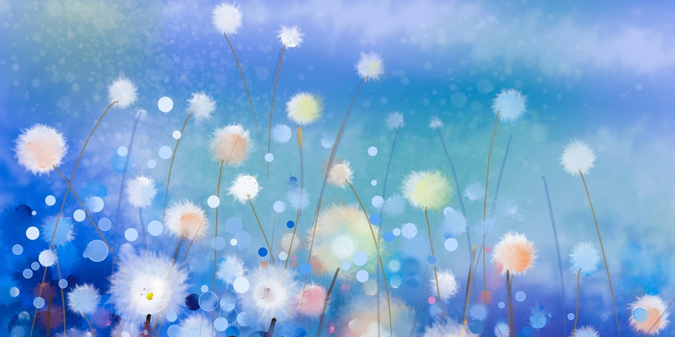 Abstract Oil Painting White Flowers Field in Soft Color Stretched and Framed