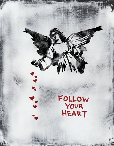 Adhesive Poster Follow Your Heart Banksy Graffiti Angel Father Love Peace Industrial Vintage God Spilling Love Personalized Living Room Bedroom Office