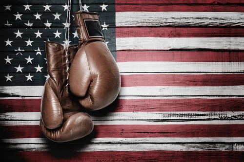 Wood Panel Effect American Flag Vintage Retro Boxing Gloves Sports Fitness Photography Realism Decorative Scenic Multicolor Living Room Bedroom Office