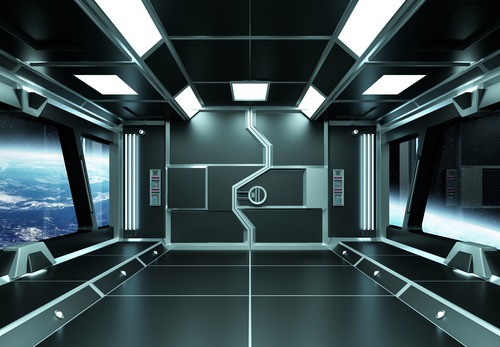 Removable Sticker Mural Space Station Airlock Earth View Astronomy Space SciFi Fantasy Digital Realism Decorative Interstellar Living Room Bedroom Office