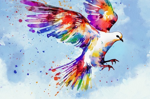 ColorBanner Framed Freedom Splash Vibrant Watercolor Dove in Flight Living Room Bedroom Office WHITE
