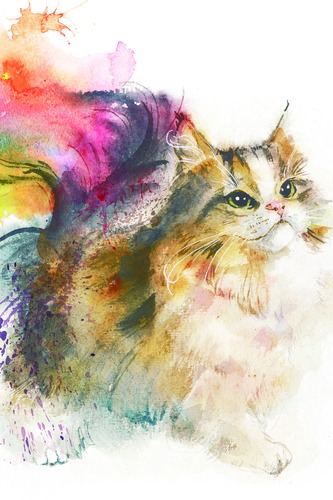 Framed Watercolor Splash Fluffy Cat Animals Wilderness Illustrations Rustic Landscape Expressive Multicolor Living Room Bedroom Office Black