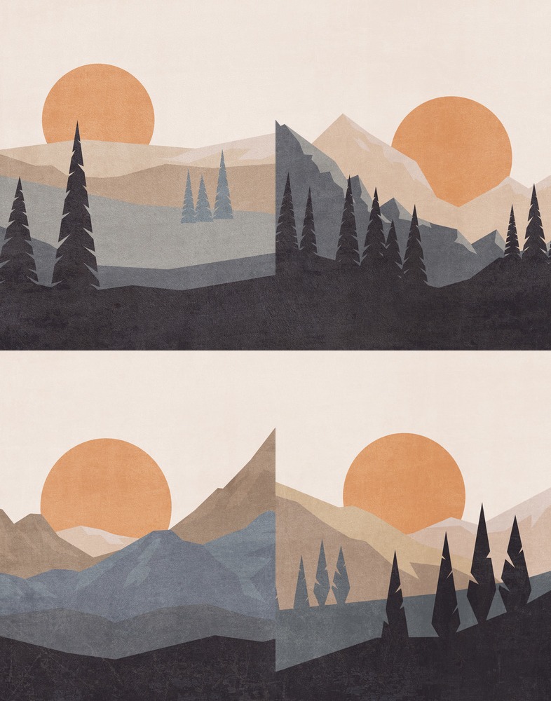 Poster Bathroom Decor Room Decor Multicolor Living Room Bedroom Office Sunlight Sunset Sunrise Mountain est Nature Wilderness Illustrations Landscape Colorful