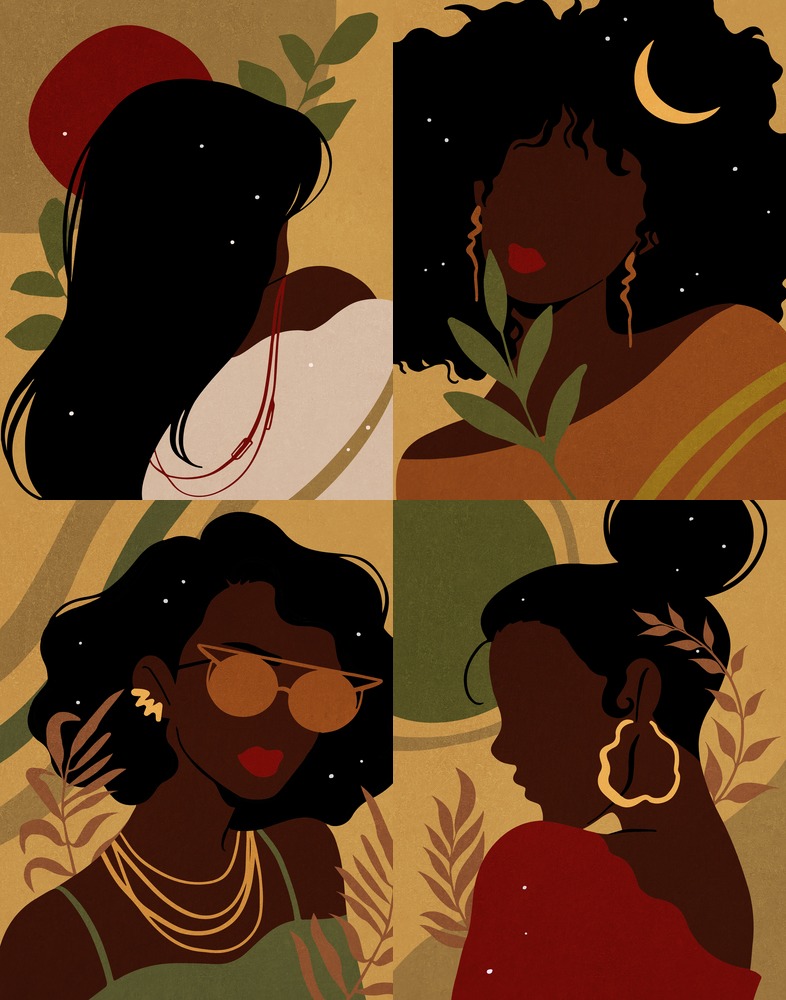 Adhesive Poster Diverse Beauty Women Earth Tones Minimalist Multicolor Decorative Living Room Bedroom Office
