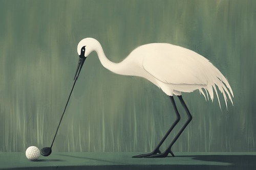 Humorous Crane Minimalist Bird Playing Golf Illustrations Decorative Multicolor Zen Rustic RelaxCalm Living Room Bedroom Office