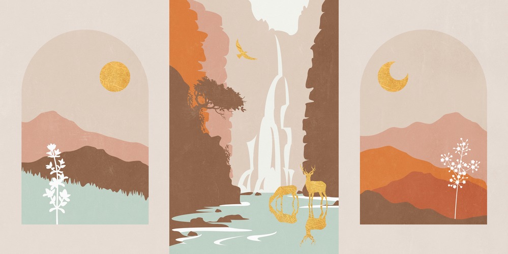 Framed Set Pastel Waterfall Moon Sun Landscapes Abstract Nature Digital Decorative Panorama Multicolor Living Room Bedroom Office Natural