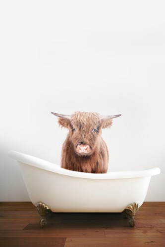 Framed Baby Cow in Bathtub Animals Wilderness Photography Realism FarmhouseCountry Portrait RelaxCalm Duotone Living Room Bedroom Office Black