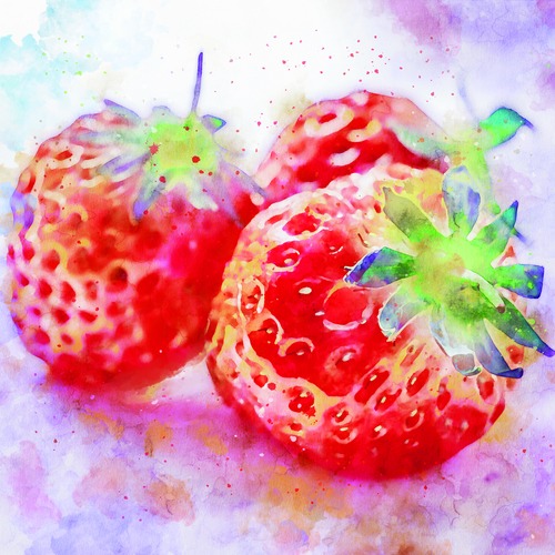 Framed Fresh Strawberries in Pink Background Fruit Tropical Watercolor Realism Closeup Urban Living Room Bedroom Office