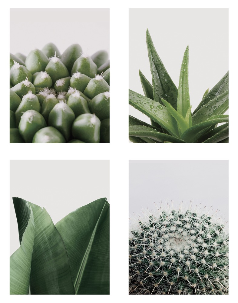 Framed Tropical Island Set of Green Desert Plant Cactus Snake Plant Nature Wilderness Décor Living Room Bedroom BLACK