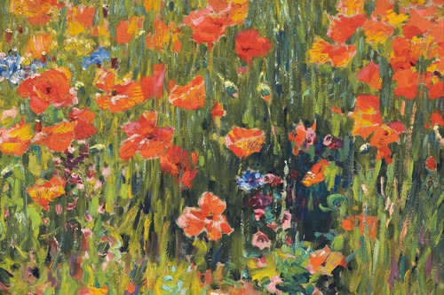 Framed Wild Poppy Field Lush Impressionist Landscape Illustrations Minimal RelaxCalm Living Room Bedroom Office BLACK
