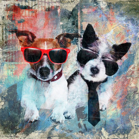 Square Dog Series Retro Painting of Two Fashionable Dogs with Sun Glasses