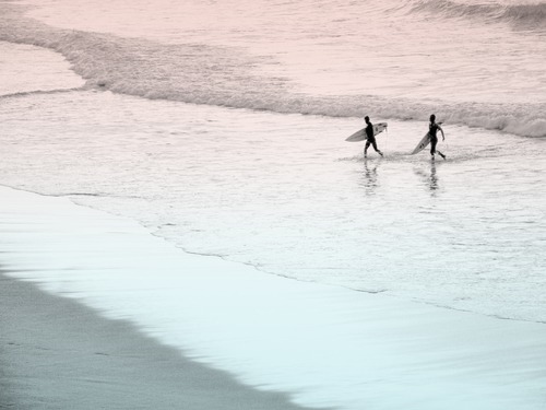 Framed Washed Out Minimalist Surfer Beach Shore Landscape Illustrations Nature Wilderness Décor Living Room Bedroom Black
