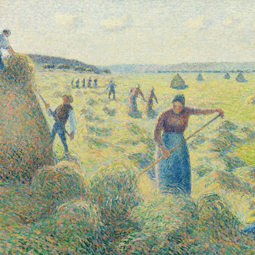 MUDECOR Premium Framed Hay Harvester in Eragny by Camille Pissarro Classic Vintage Illustrations Fine Decorative Retro Historic Zen Living Room Bedroom Office Natural