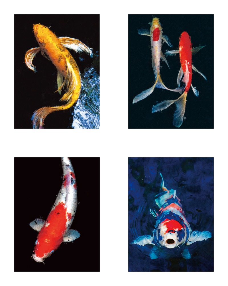 Woodrose Framed Collage Set Koi Fish Variety Pond Amphibians WildLife Nautical Illustrations Multicolor Watercolor Living Room Bedroom Office WHITE