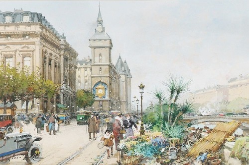 artprintsstop Floating Frame Flower Market on The Seine by French Painter Eugène GalienLaloue
