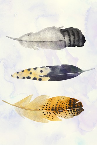 SIGNLEADER Framed Dotted Yellow and Blue Feathers Animals Wilderness Illustrations Rustic Colorful Multicolor Ultra Living Room Bedroom Office Natural