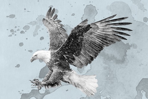 Framed Watercolor Explosion Black White Eagle Portrait Animals Wildlife Illustrations Realism Rustic Colorful Living Room Bedroom Office Natural