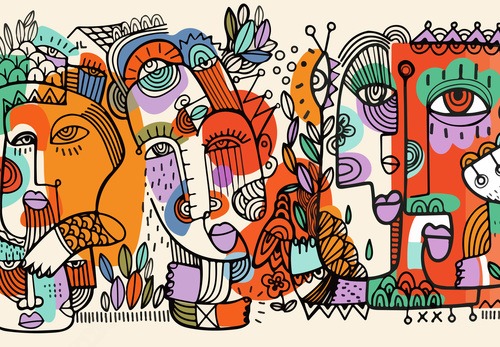 MUDECOR Mural Vibrant Abstract Faces and Nature Elements in Bold Colors Removable SelfAdhesive paper ation Bedroom Living Room