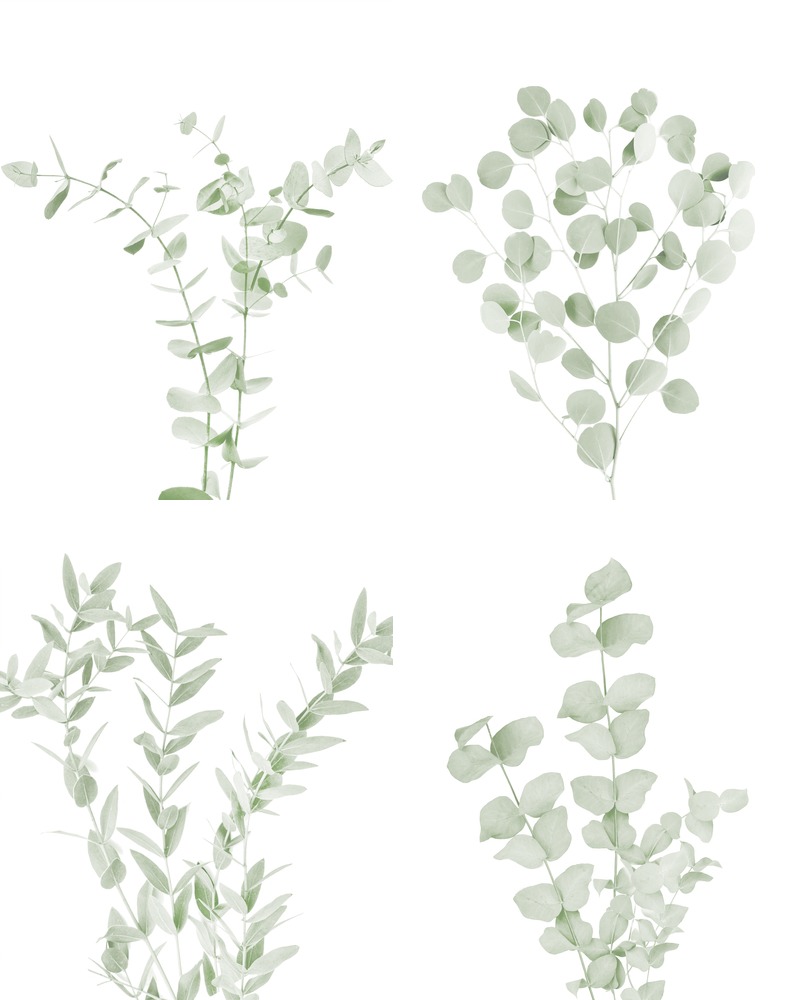 Adhesive Poster Pastel Watercolor Green Leaves Nature Wilderness Digital Decorative Elements Multicolor Botanical Floral Living Room Bedroom Office