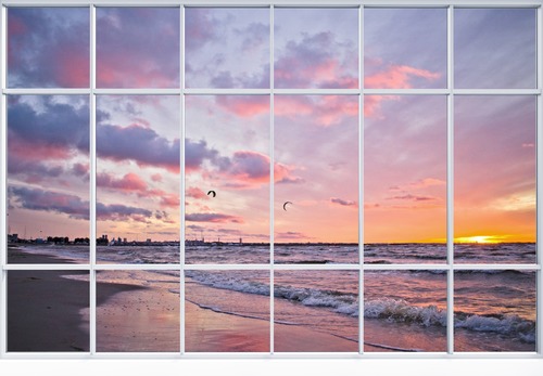 Removable Sticker Mural Pastel Cloud Sunset Tropical Beach Nature Wilderness Photography Realism Landscape Rustic Window Door Living Room Bedroom Office